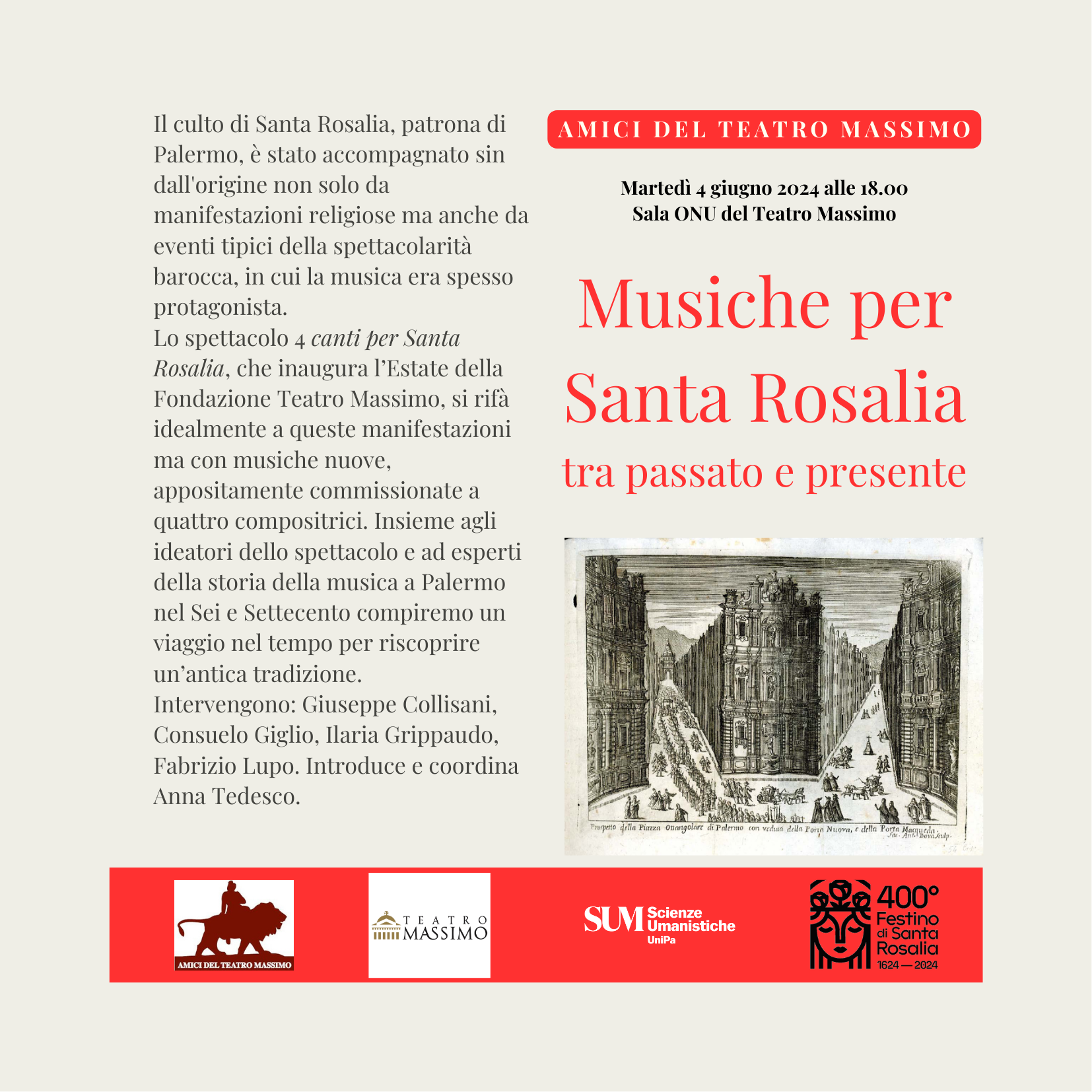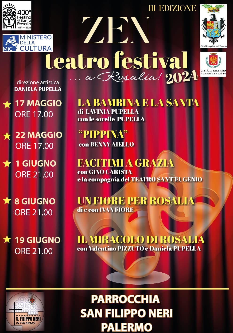 Performances in honor of Saint Rosalia for the 400th Festino, from 27/06/2024 to 03/08/2024